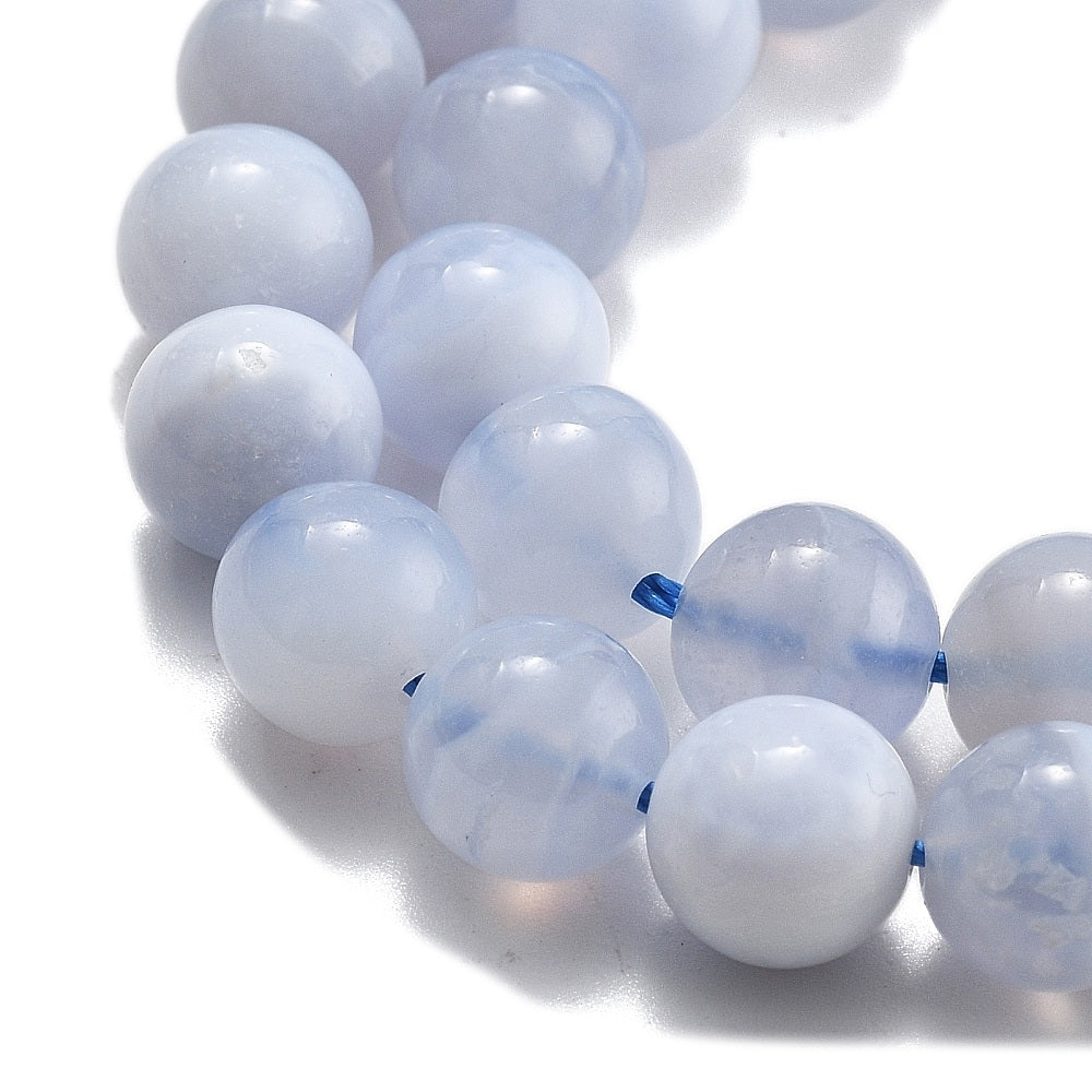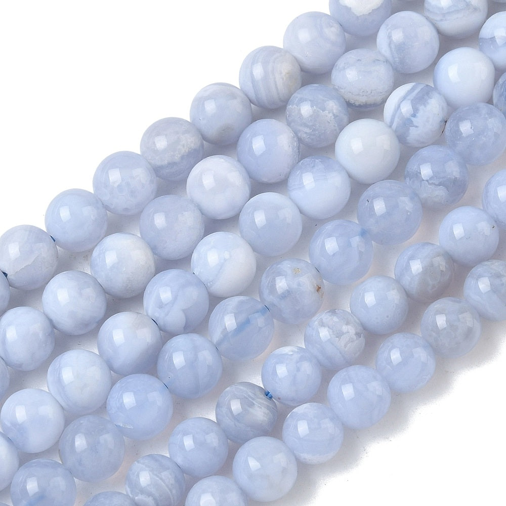 Discover the serene beauty of Blue Lace Agate in this stunning natural bead strand.