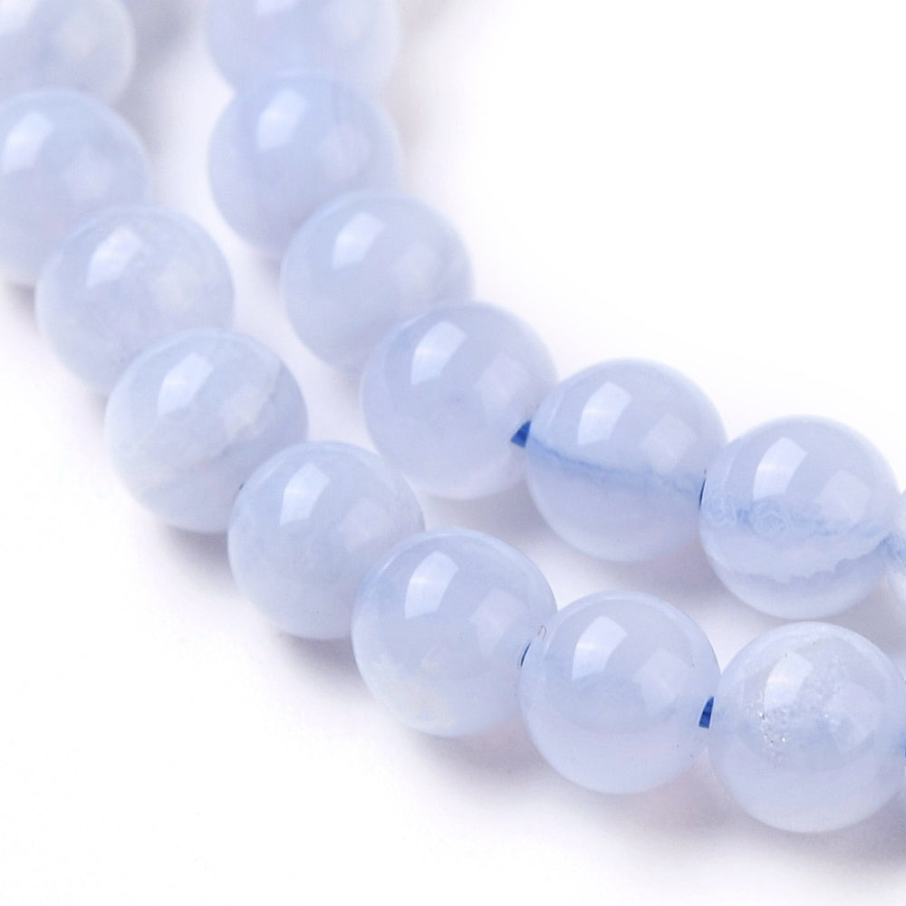 Known for its calming pale blue hues and delicate banding patterns, this gemstone is perfect for creating elegant jewellery designs, meditation malas, or adding a touch of tranquility to your beading projects.