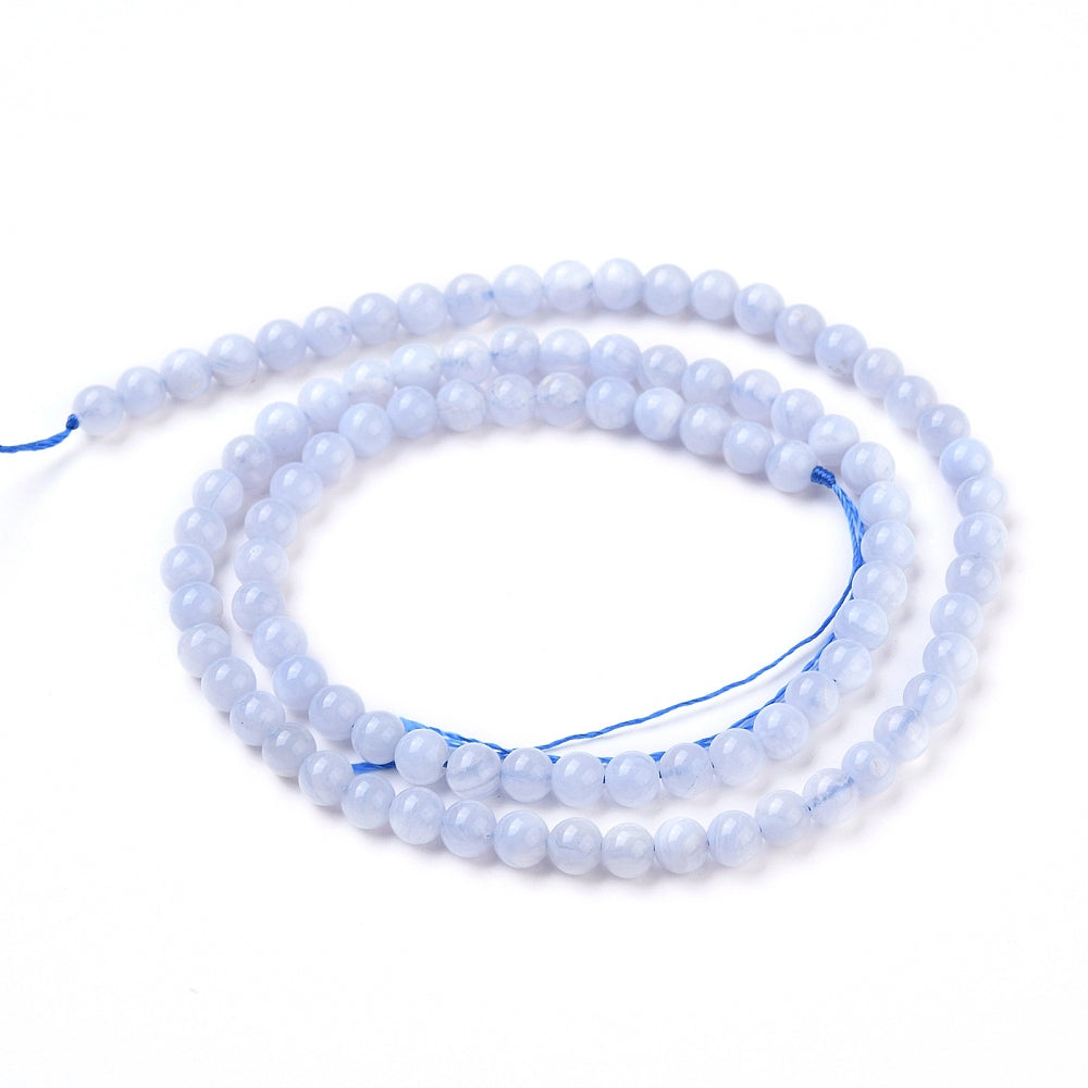 Discover the serene beauty of Blue Lace Agate with this stunning 38cm strand featuring approximately 98 smooth round beads, each measuring 4mm.