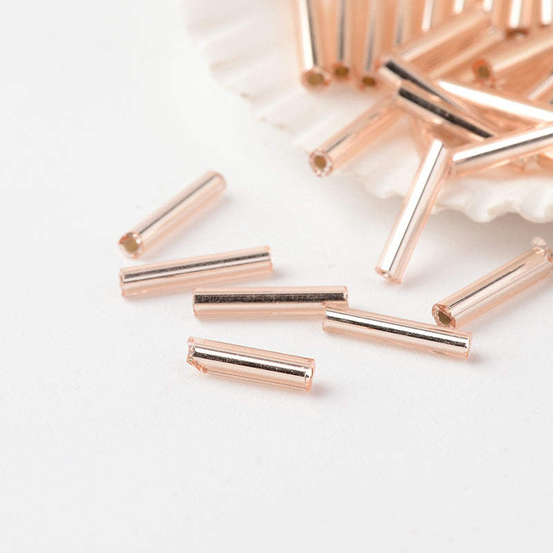 Bugle Bead 9mm S/Lined MistyRose P/Gr