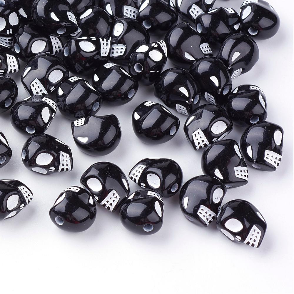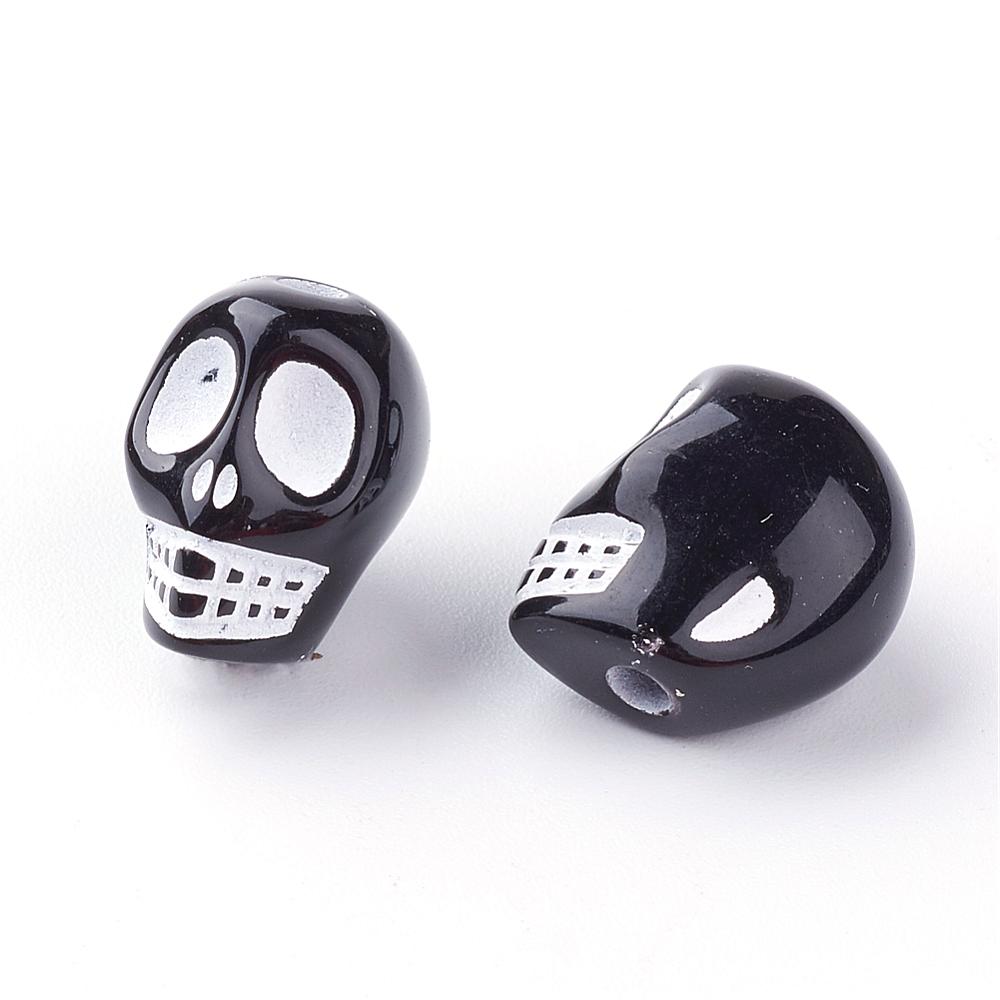 Acrylic Skull Black/White 13x10x12mm Each