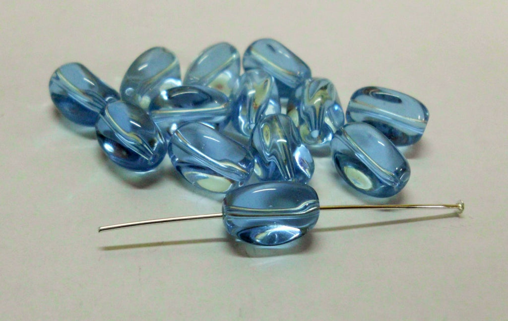 Glass Centre Drill Facet Drop 11.6x7.7mm Blue Per Each