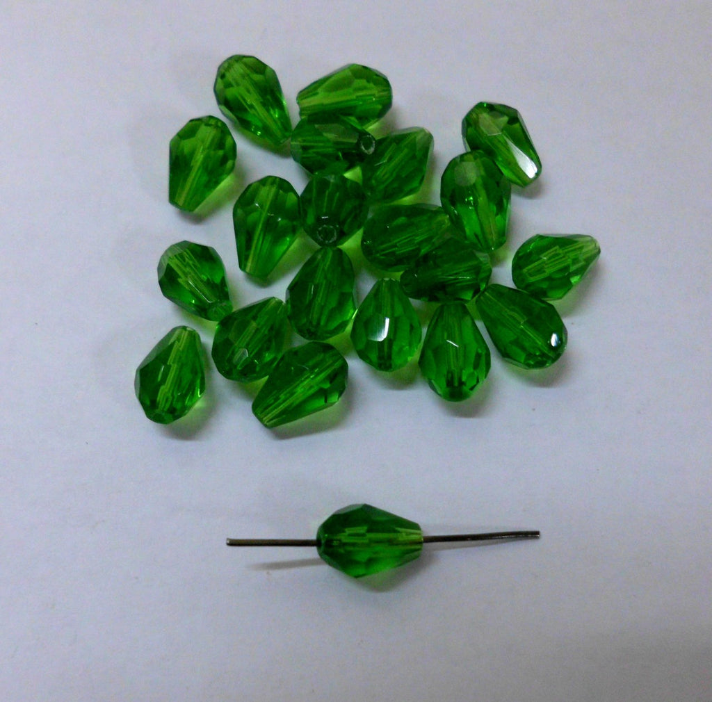 Glass Centre Drill Facet Drop 11x7.7mm Green Per Each