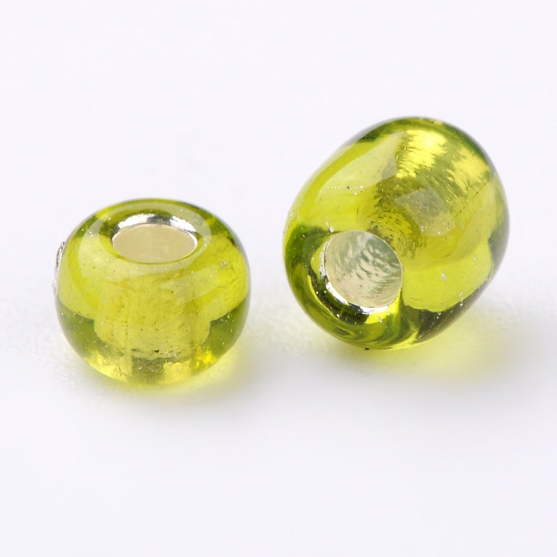 Glass Seed Bead No 6 Silver Lined Lime Green Per Gram