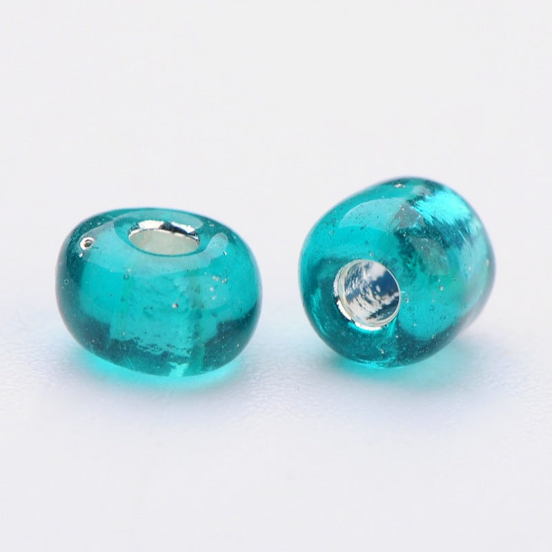 Glass Seed Bead No 6 Silver Lined Teal Per Gram