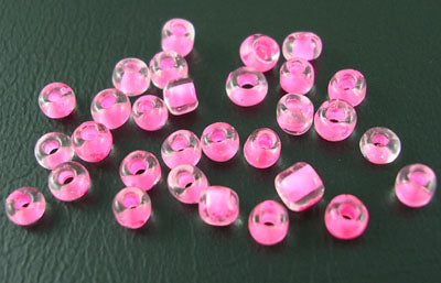 Glass Seed Bead No 8 Inside Pink P/g