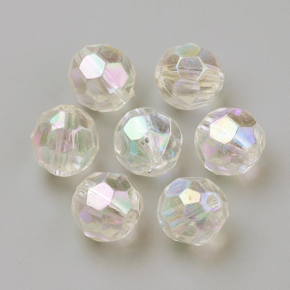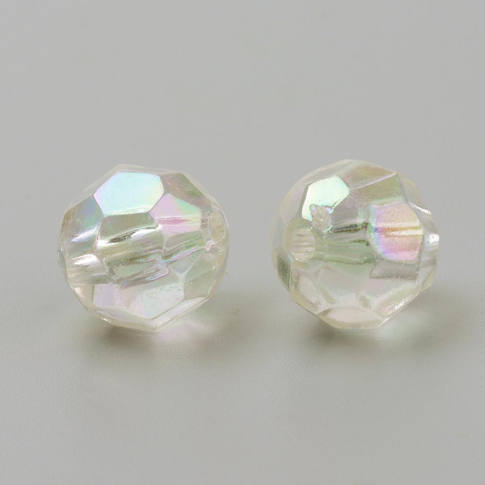 Plastic Round Facet 10mm Crystal Clear AB Per gram