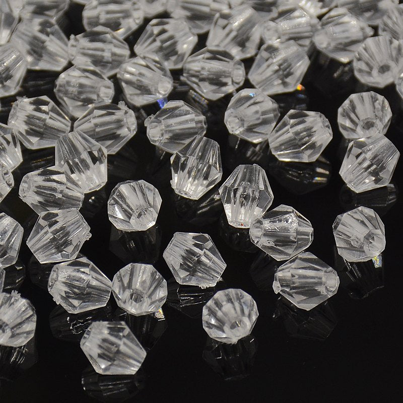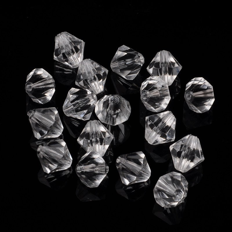 Plastic Bicone 6mm Trans Clear Per Gram