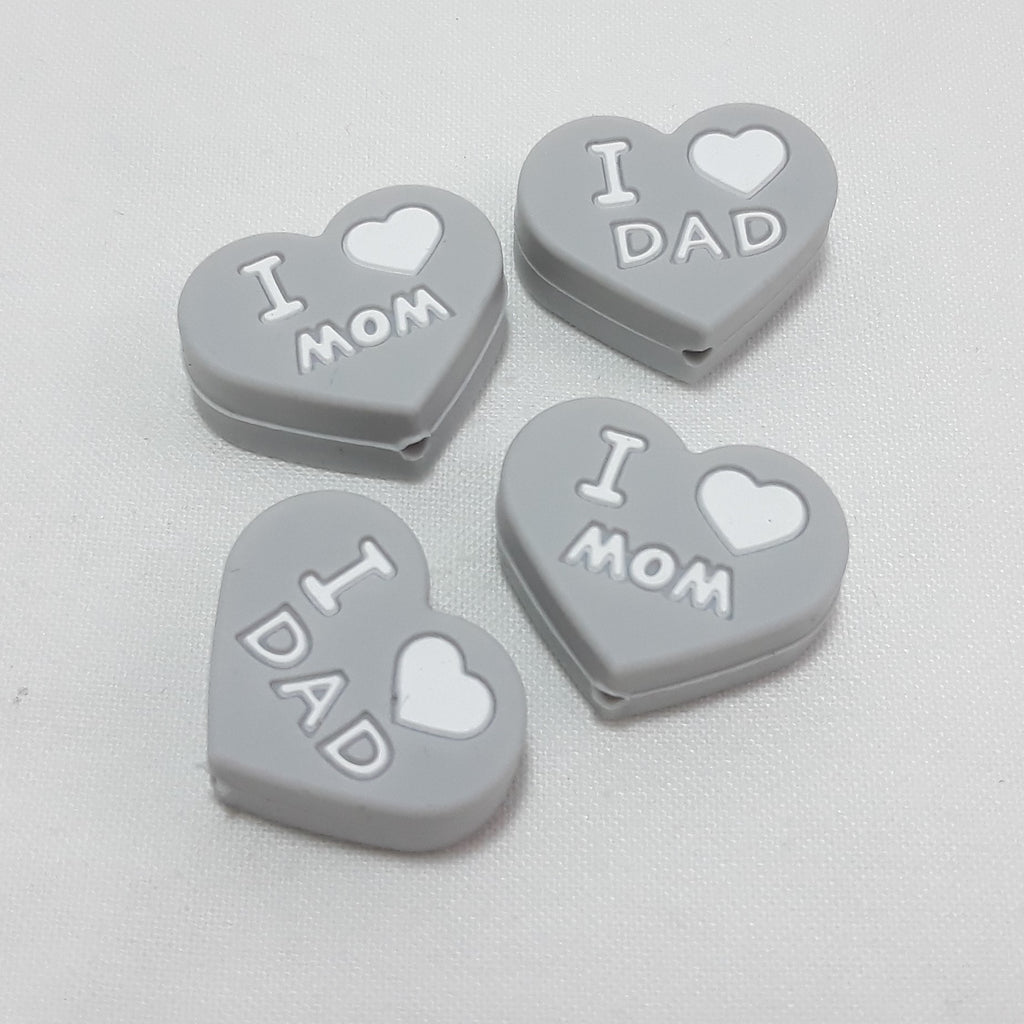 Silicone Heart Grey I Love Mum & Dad 20x25x10