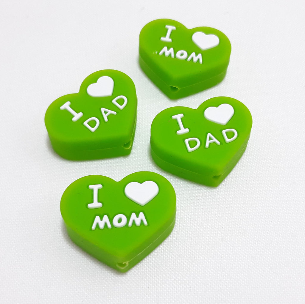 Silicone Heart Green I Love Mum & Dad 20x25x10