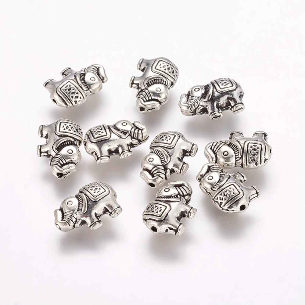 Spacer Elephant Beads Silver 8.5x12x4mm 10pcs