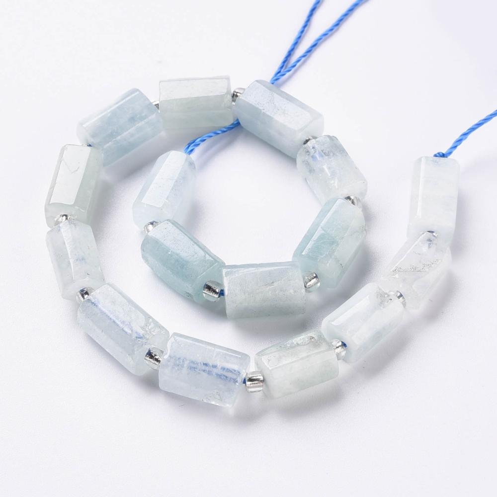 Aquamarine Natural Faceted Column 11x6mm approx.16 beads 18.5cm Strand