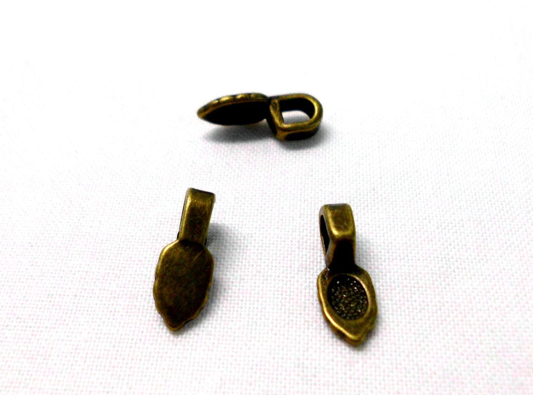 Glue on Bail Spade 15x6mm AB 3pcs. Glue-on flat pad bail has a decorative Spade design and closed loop. No need for wire wrapping or drilling holes into focal pieces, simply glue the bail to a focal component, cabochon or freeform piece to create an instant pendant.