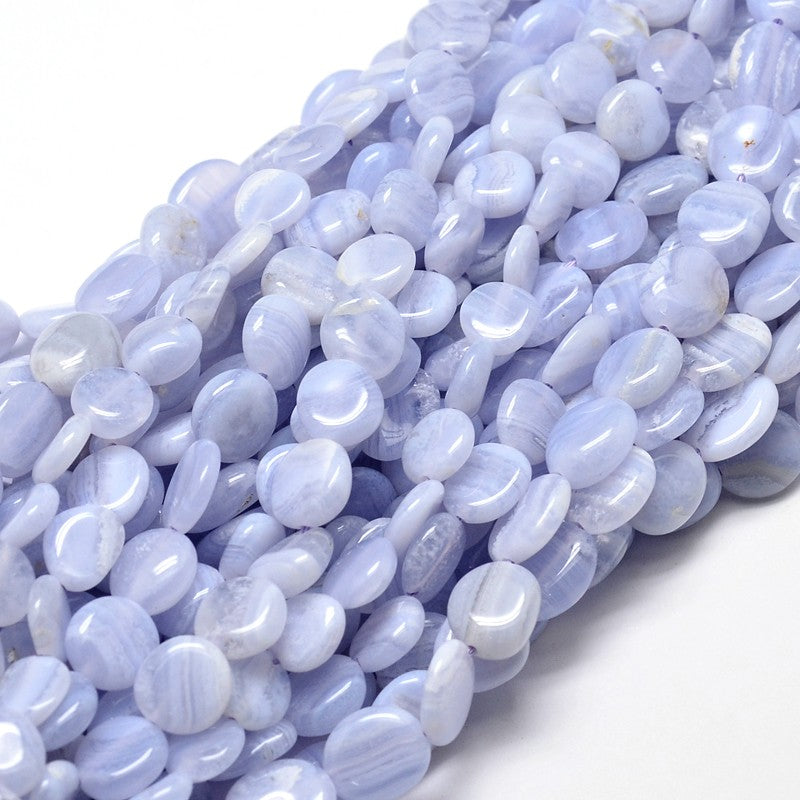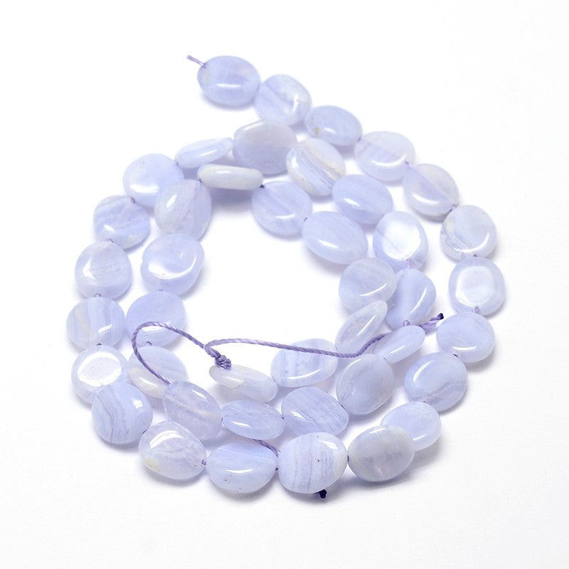 Discover the serene beauty of Blue Lace Agate nuggets, nature's own masterpiece in soothing shades of blue and white. Each strand features genuine, unpolished nuggets ranging from 9-12mm to 13-6mm, showcasing the unique banding patterns that make every stone one-of-a-kind. At 37.5cm long, this strand is perfect for creating statement jewellery pieces or adding a calming touch to your craft projects. Blue Lace Agate is cherished for its gentle, peaceful energy—ideal for jewellery makers seeking stones with both visual appeal and meaningful presence. String them, wire-wrap them, or display them as natural treasures in your collection.