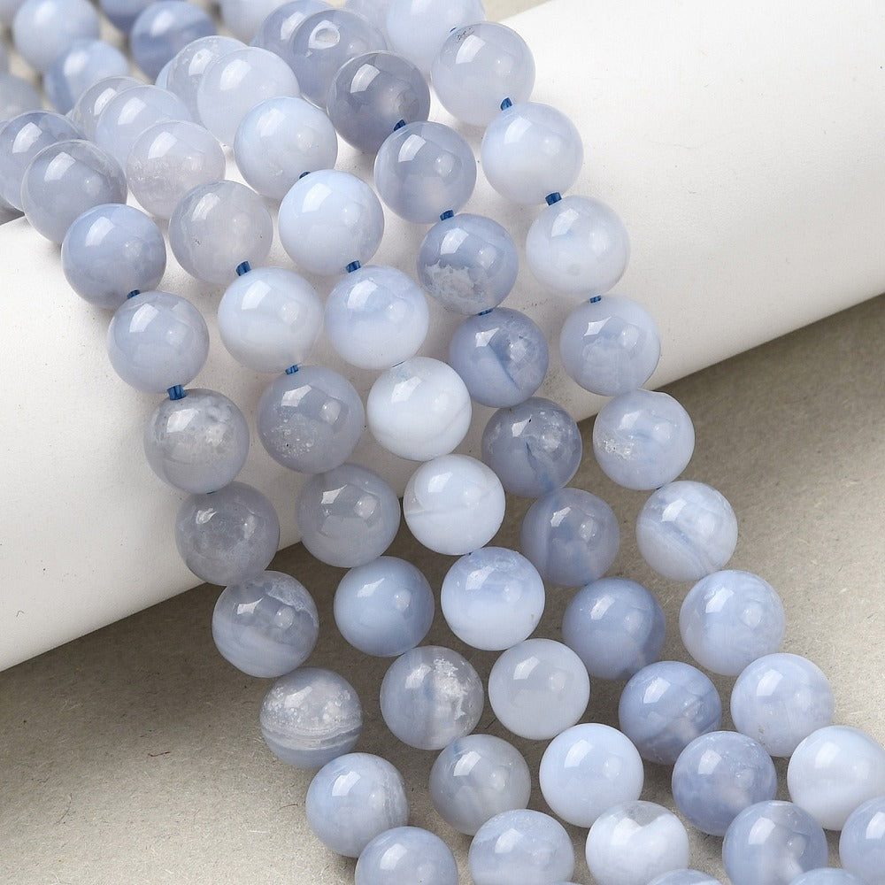 Blue Lace Agate Round Natural 8mm approx. 50 beads 39.5cm Strand