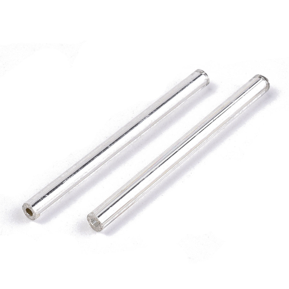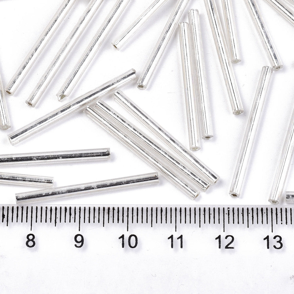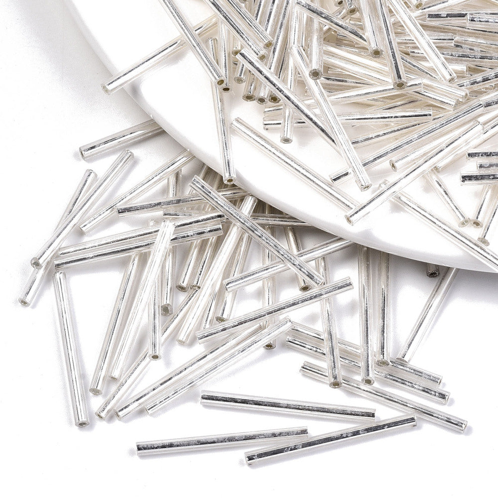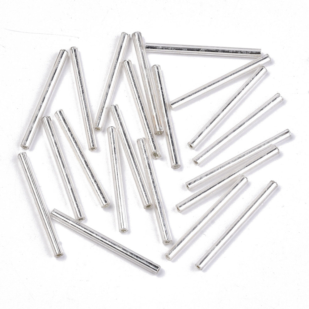 Bugle Seed Bead Metallic Silver 30x2.5mm 20gm Pack