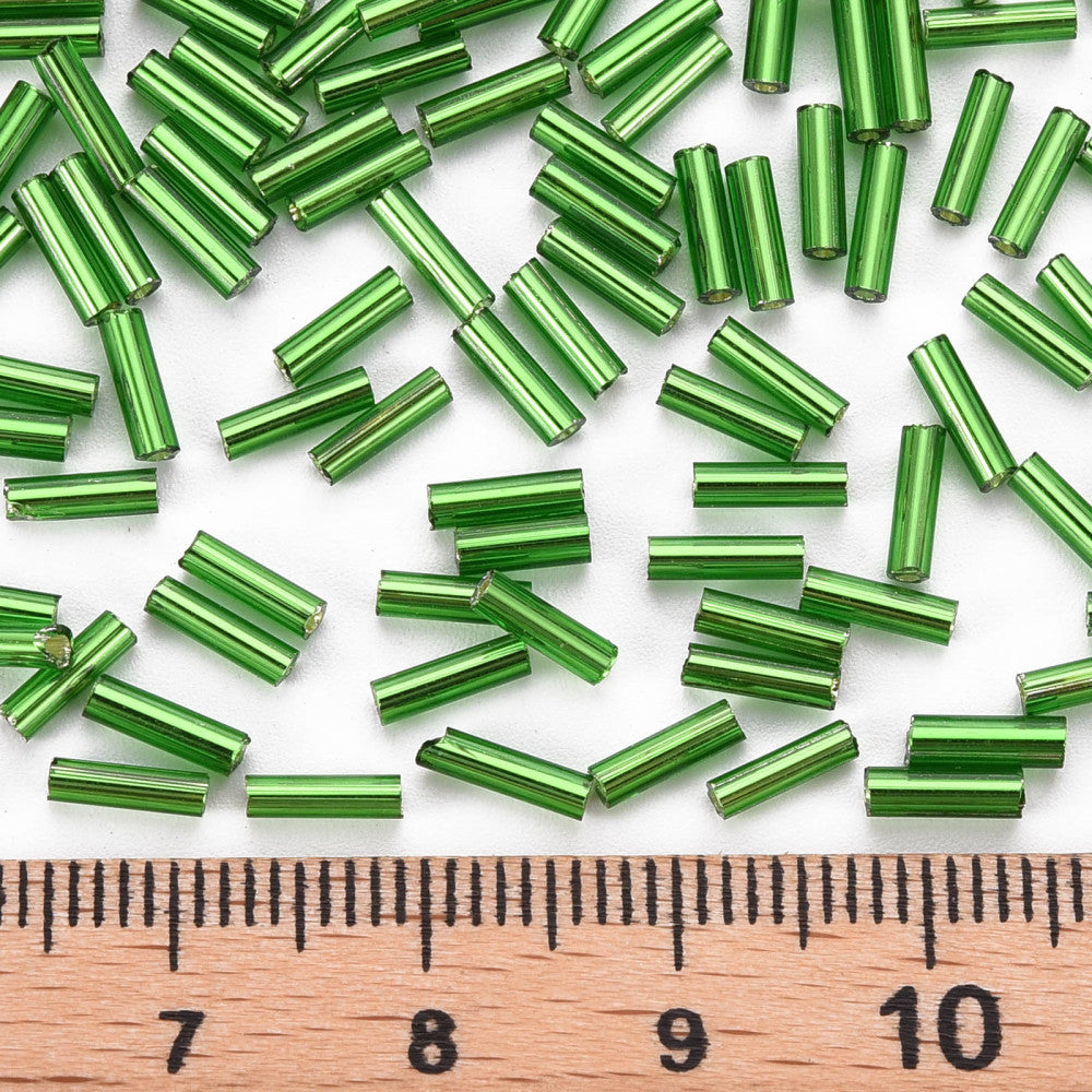 Glass Bugle Bead 6.5x2mm Metallic Green per gram