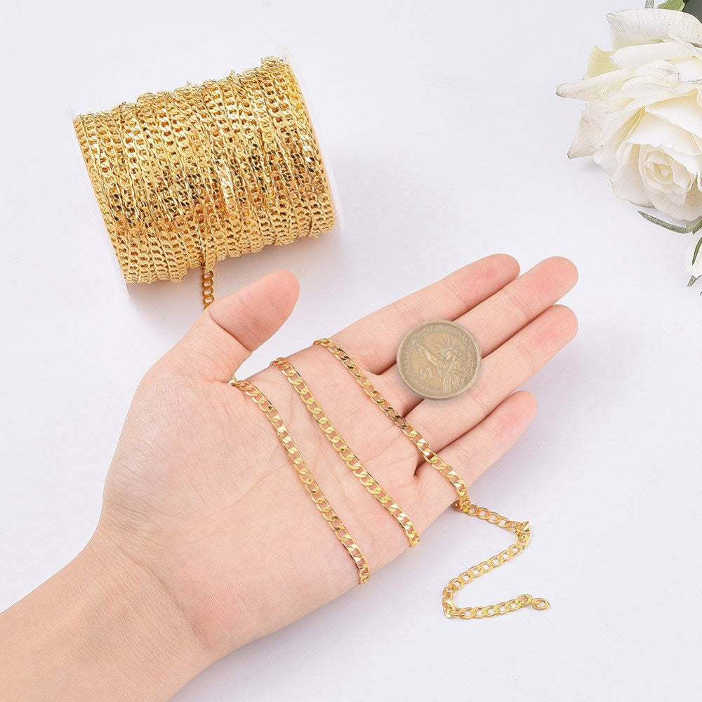 Chain Brass Curb Link 6x5 Gold Closed Link Per Mtr