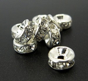 Bead Flat Round 7x4 White With Red Heart Packet 20