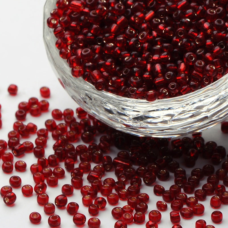 Glass Seed Bead No 6 Silver Lined Dark Red Per Gram