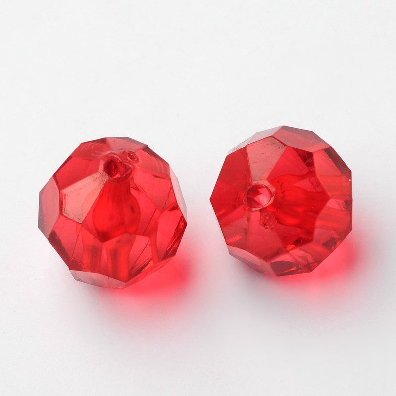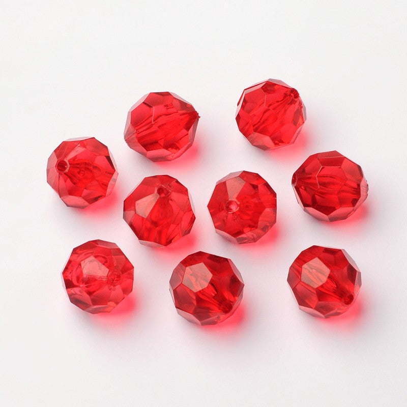 Round Plastic Facet 18mm Transparent Red