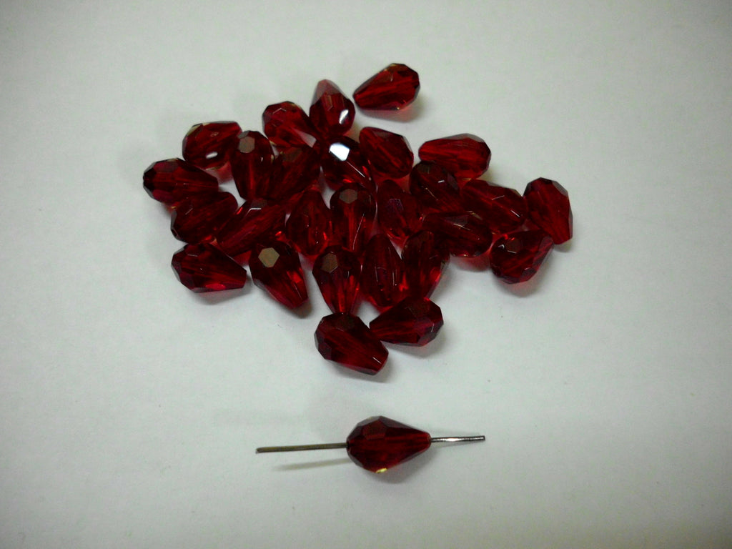 Glass Centre Drill Facet Drop 11.4x7.7 Dk Red Per Each