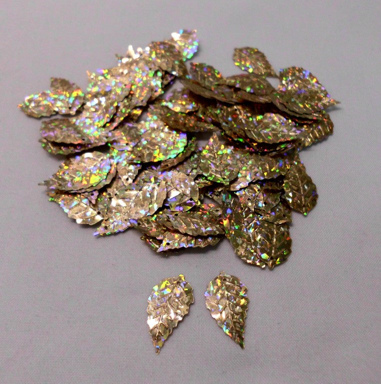 Sequin Leaf 24x14mm 2h Laser Gold P/Gr