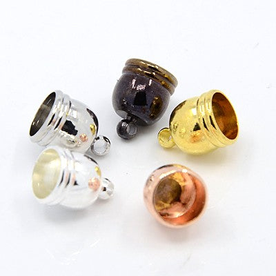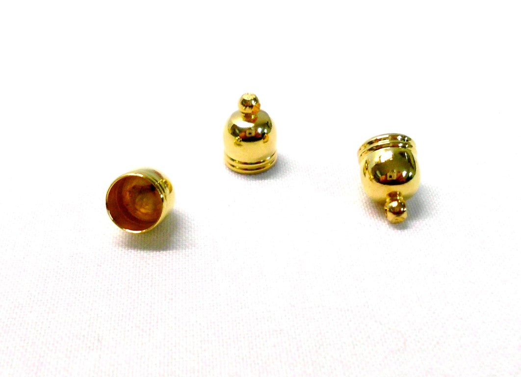 Brass Cord End 11x8mm 7mm Interior Diameter with loop gold 10pcs. Glue-in cord ends are used by inserting an amount of glue into the cup, then pressing the cord into the cup and let it set.