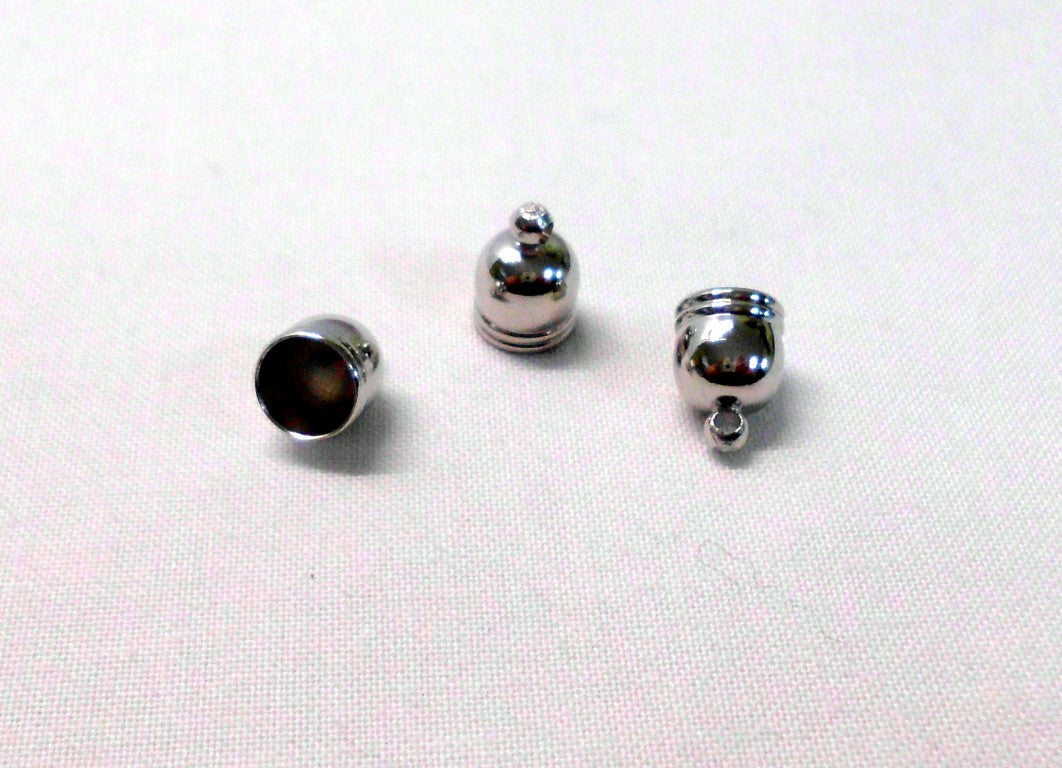 Brass Cord End 11x8mm 7mm Interior Diameter with loop Platinum 10pcs. Glue-in cord ends are used by inserting an amount of glue into the cup, then pressing the cord into the cup and let it set.