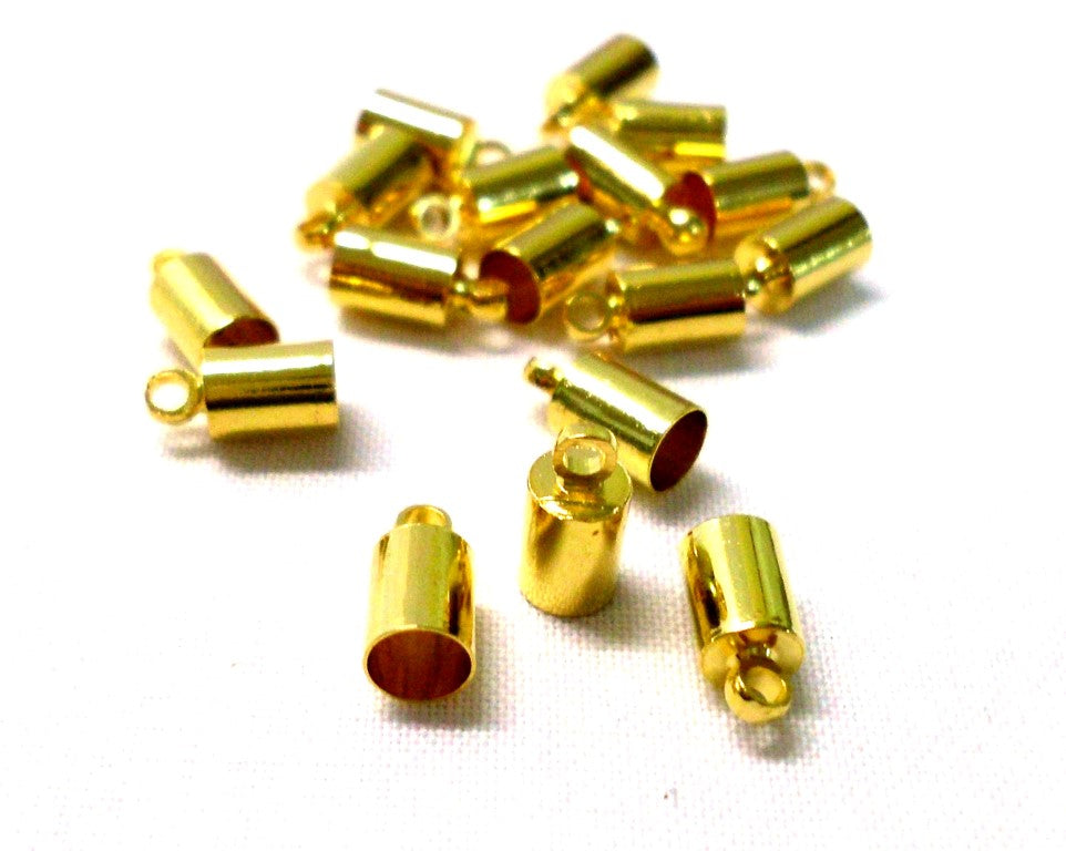 Brass Cord End 9x5 4.5mm Interior Diameter with loop Gold 10pcs. Glue-in cord ends are used by inserting an amount of glue into the cup, then pressing the cord into the cup and let it set.