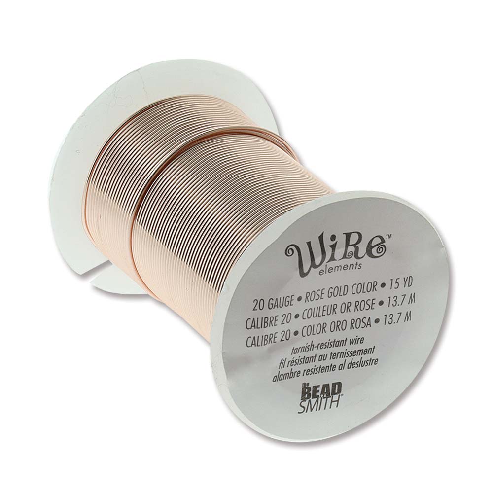 Wire Non Tarnish Rose Gold 18gauge 9.1m Lacquered, Tarnish-Resistant Wire- Half-hard wire that’s ideal for Jewelry making, wire wrapping, crafting, scrapbooking, and much more! - 99.99% Copper core - Available in 16-28 gauge - Lead-Free, Nickel Free. Medium-temper wire is flexible and well-suited for creating components with sharp angles or that need to maintain their shape under moderate stress, such as ear wires, jump rings, or weight-bearing parts of wire-wrapped Jewelry. When used to create an element like a clasp, which will be subjected to high stress, it should be hardened after shaping. This can be done by placing it on an anvil or bench block and striking it with a nylon-jaw hammer. "