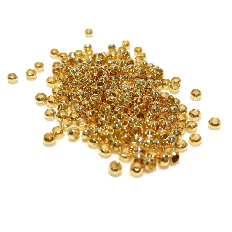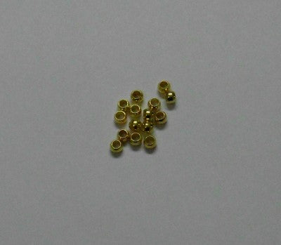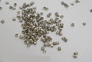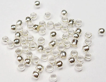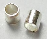 Crimp beads are soft metal beads used in place of knots to secure clasps and beads onto un-knottable stringing material such as beading wire. To use crimps, you will need some flat nose pliers to squash the crimps, or speciality crimping pliers that "fold" the bead into a small volume. First, thread crimp onto wire.