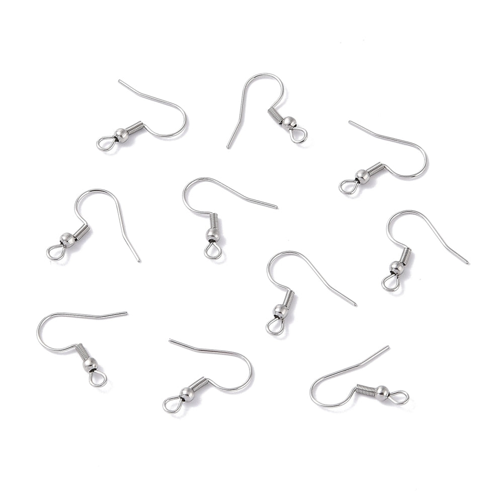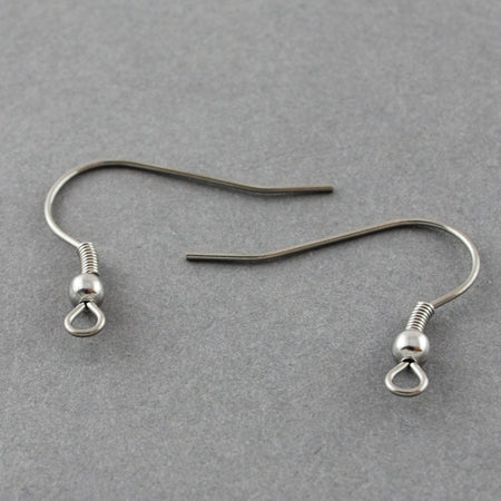 Earwire, stainless steel, 20mm fishhook with 3mm ball and 4mm coil with open loop, 21 gauge. Sold Per 10gram packet (Aprox 22pair). Probably the most popular style of earwire worldwide. The basic fishhook with ball and coil is used in countless applications. It is attractive, secure and comfortable, even for heavier earrings. Corrosion- and stain-resistant stainless steel fishhook earwires feature ball and coil accents, and are constructed with an open loop to embellish with any number of components. Offering durability along with tremendous value, these shiny earwires are a quality, precious metal alternative with an array design possibilities.