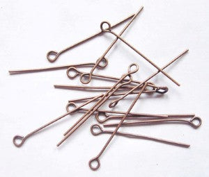 Eye Pin 35mm NF Red Copper 10g approx 77 pieces per packet. A jewellery-maker???Ñs staple, Eye pins allow you to make earrings, pendants, links and drop embellishments faster than lightning. Due to the manufacturing process, headpins and eye pins will often arrive bent. However, they are soft metal, so they are easily reshaped.