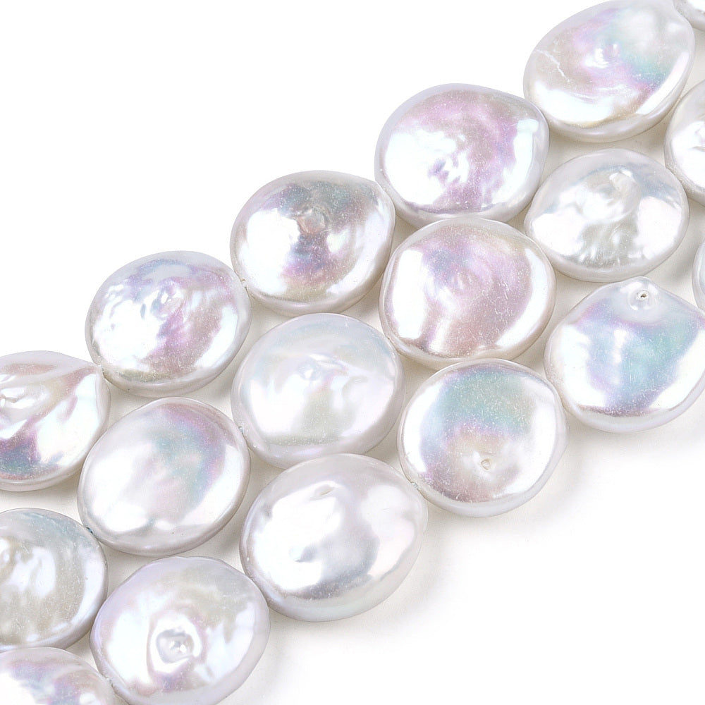 Embrace the organic beauty of nature with these stunning freshwater pearl flat round beads. Each 15x11.5mm baroque keshi pearl showcases unique natural variations and lustrous surface qualities that make every bead one-of-a-kind. Perfect for creating statement jewellery pieces, these versatile beads add depth and character to necklaces, bracelets, and mixed-media designs. The irregular baroque shape brings an artisanal touch that celebrates imperfection as art. Ideal for jewellery makers seeking authentic, premium-quality pearls with genuine personality.