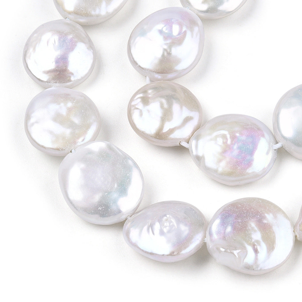 Freshwater Pearl Flat Round 15x11.5mm Baroque Natural Keshi Bead Each