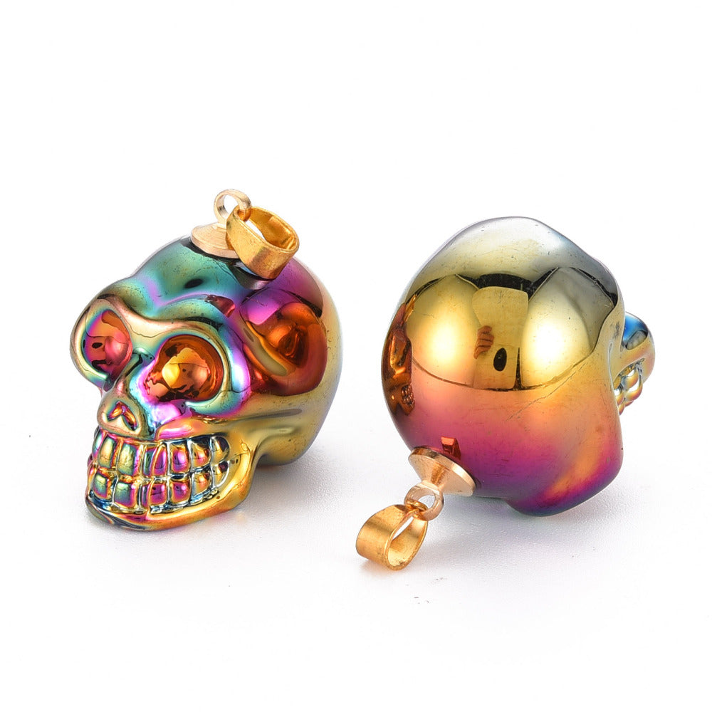 Pendant Skull K9 Glass Multi Electroplate 26hx18wx26d with Gold Bail