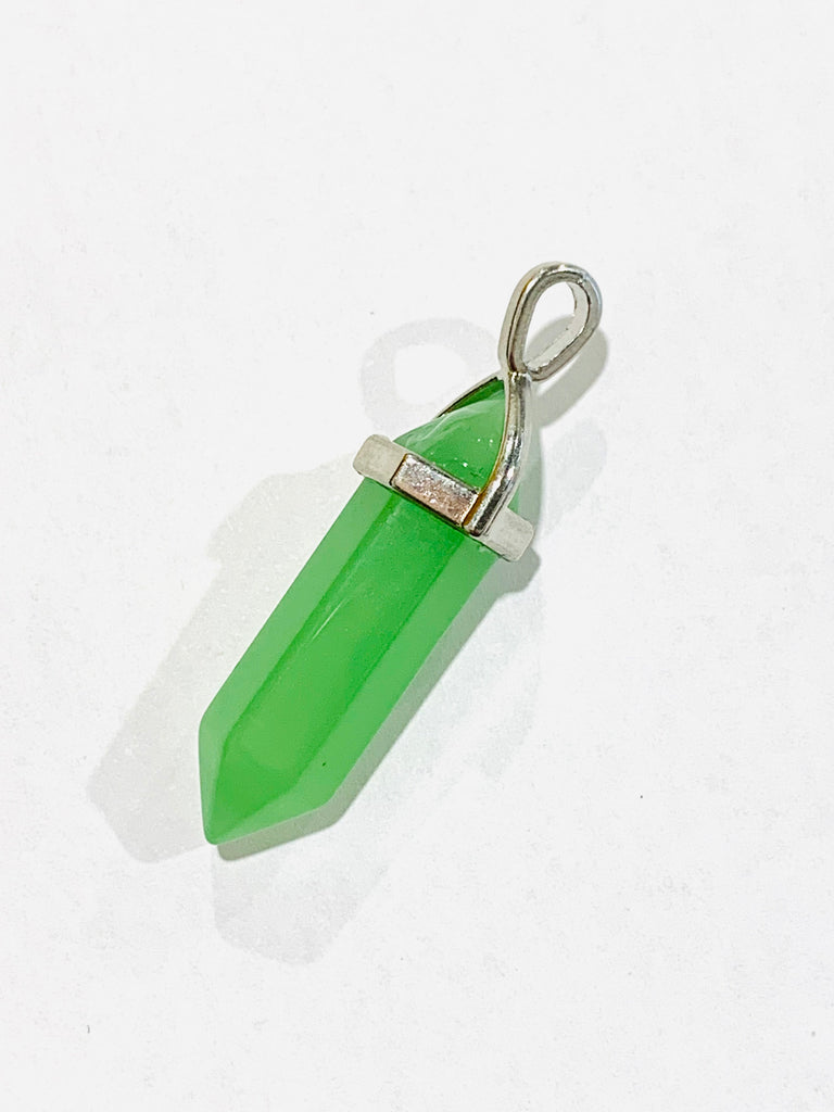 Pendant Green Pointed Glass 39x9mm Silver Findings