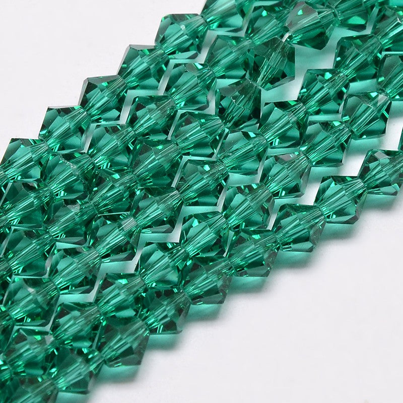 Glass Bicone 3mm Green approx 123 beads per 36.5cm strand