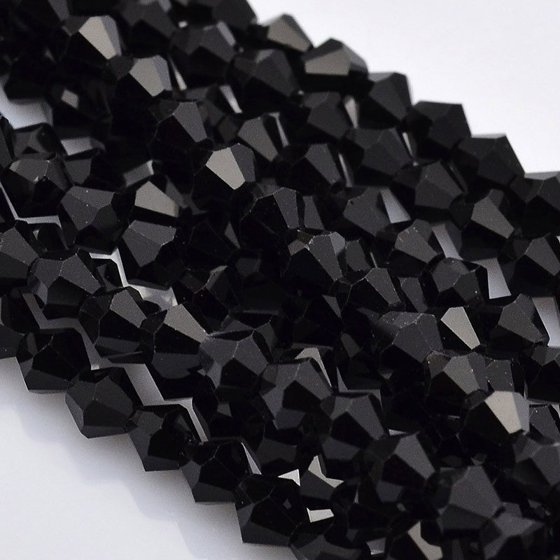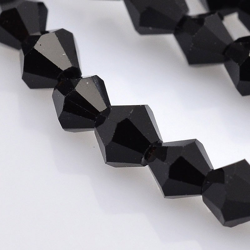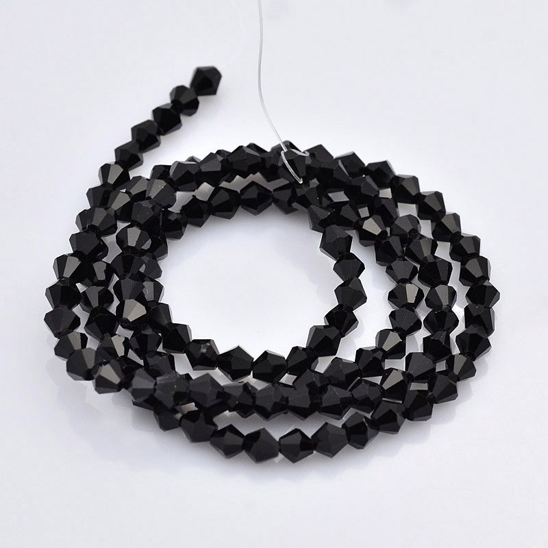 Glass Bicone 3mm Jet Black approx 114 beads per 34cm strand
