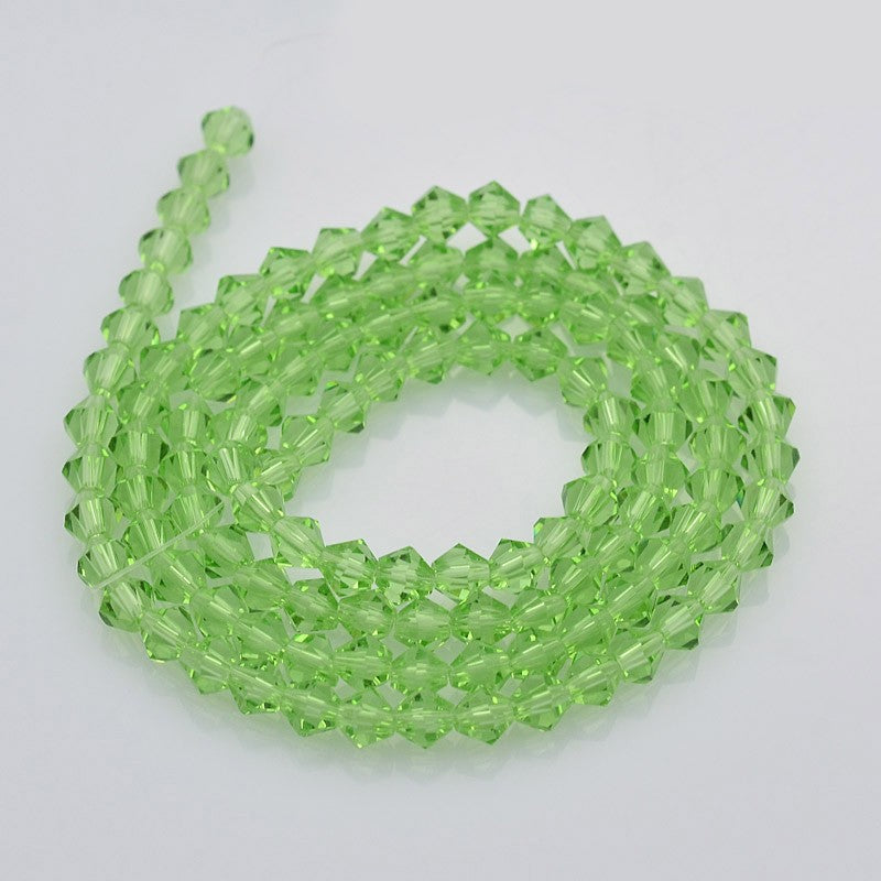 Glass Bicone 3mm Light Green approx 113 beads per 36cm strand - is backordered and will ship as soon as it is back in stock.