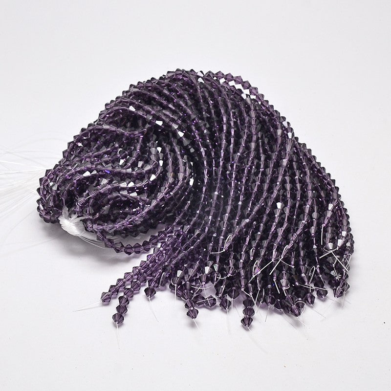 Glass Bicone 3x2.5mm Royal Purple approx 152 beads per 40.5cm strand