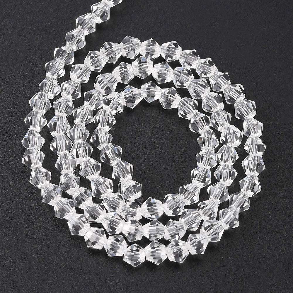 Glass Bicone 4mm Crystal Clear approx 84 beads per 32.5cm strand