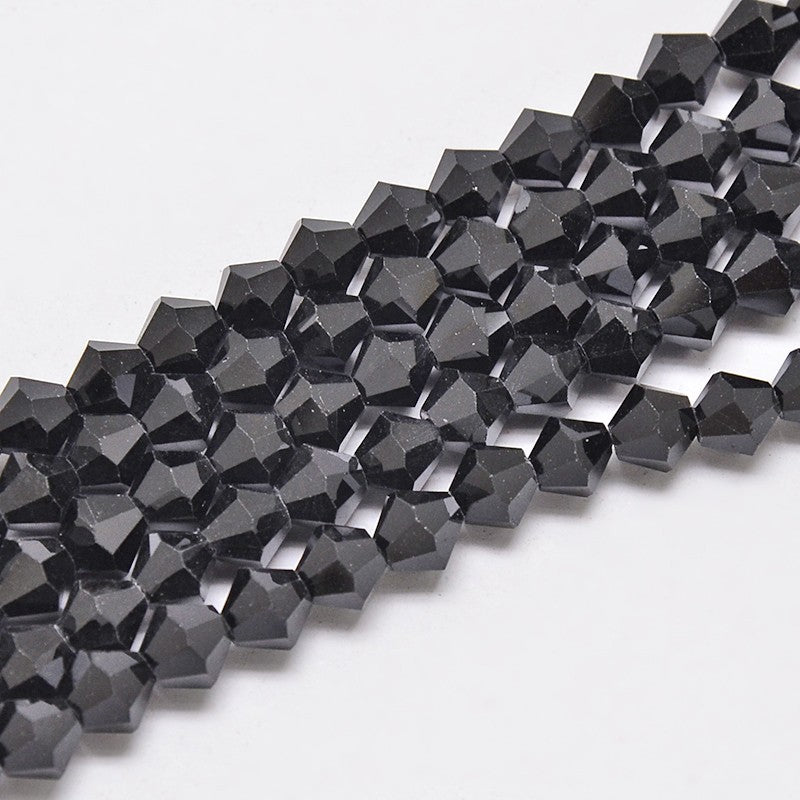 Glass Bicone 6mm Jet Black approx 45 beads per 25.5cm strand