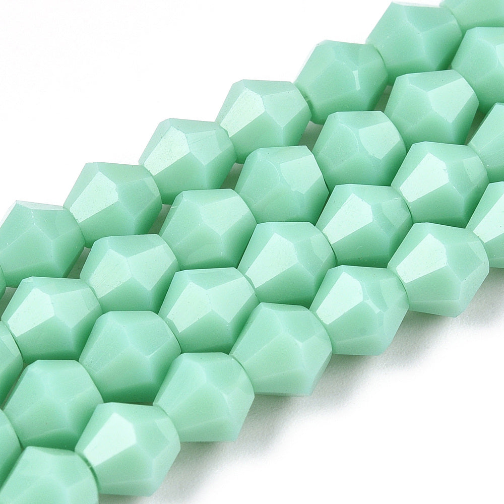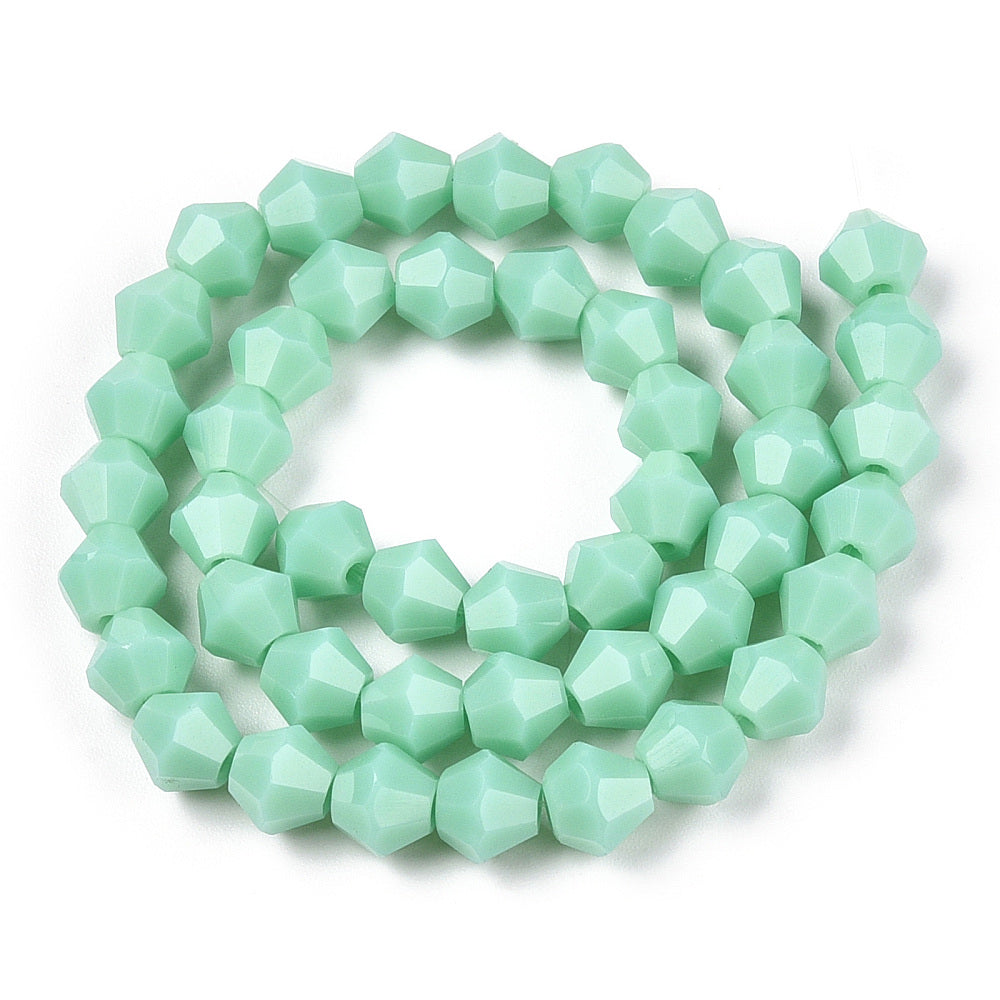 Glass Bicone 6mm Opaque Mint approx 46 beads per 26cm strand