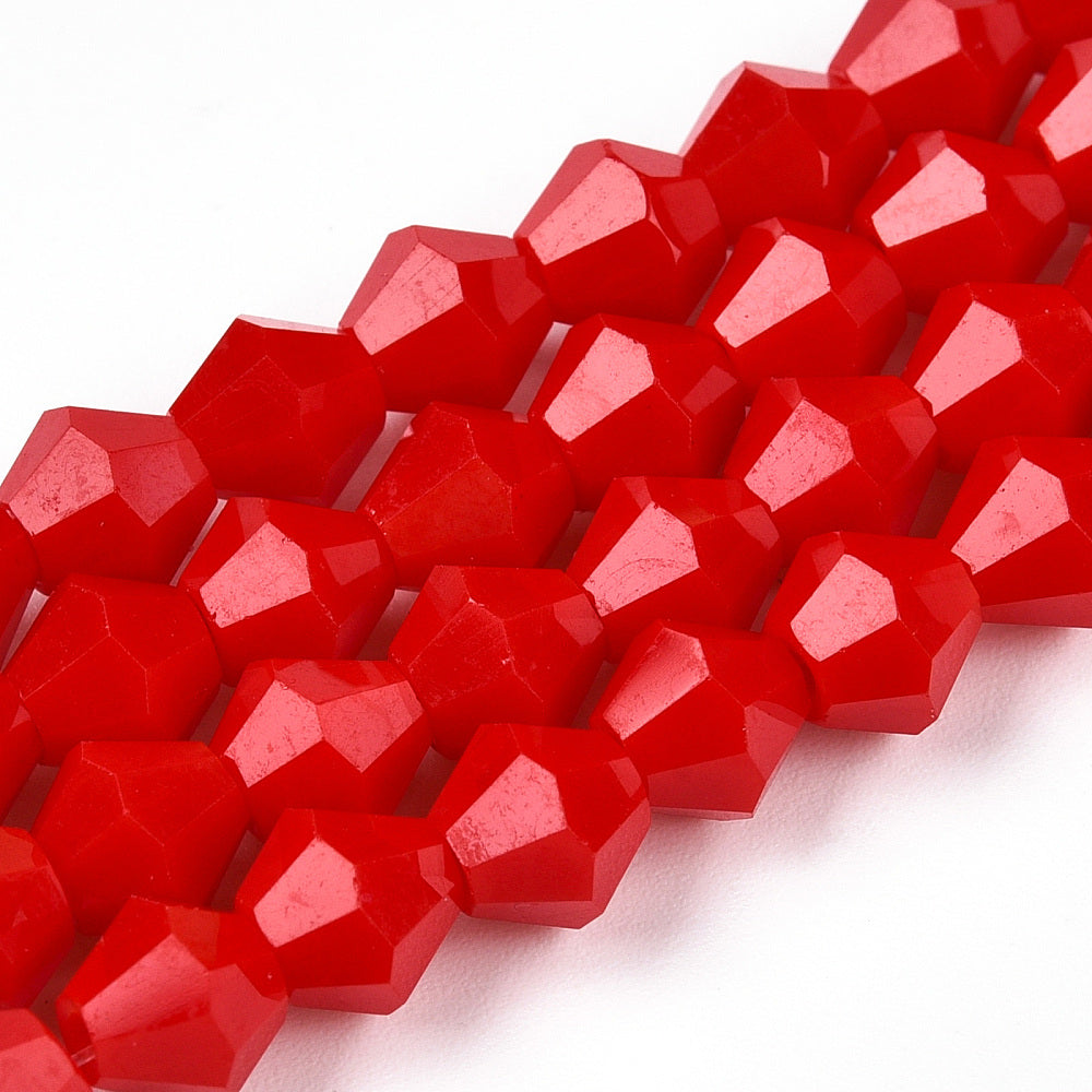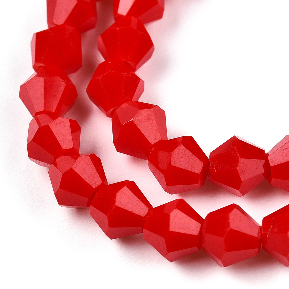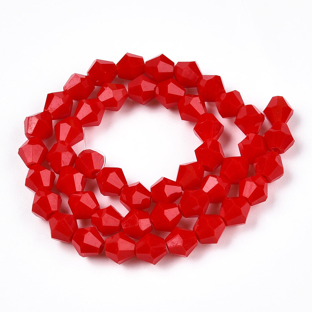 Glass Bicone 6mm Opaque Red approx 46 beads per 26cm strand