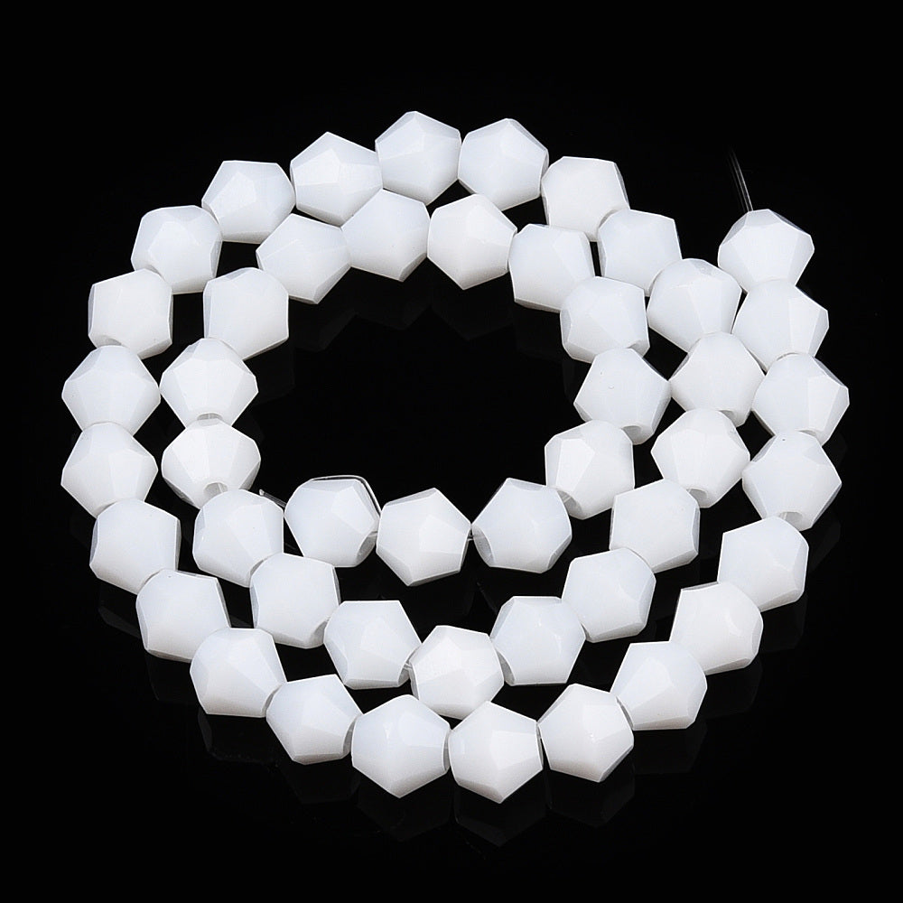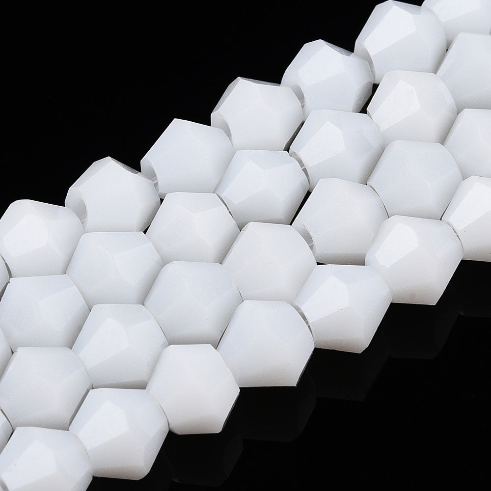 Glass Bicone 6mm Opaque White approx 46 beads per 26cm strand