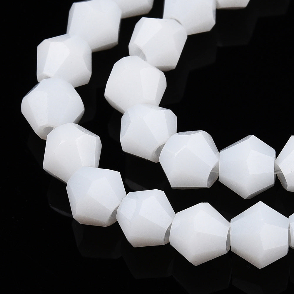 Glass Bicone 6mm Opaque White approx 46 beads per 26cm strand