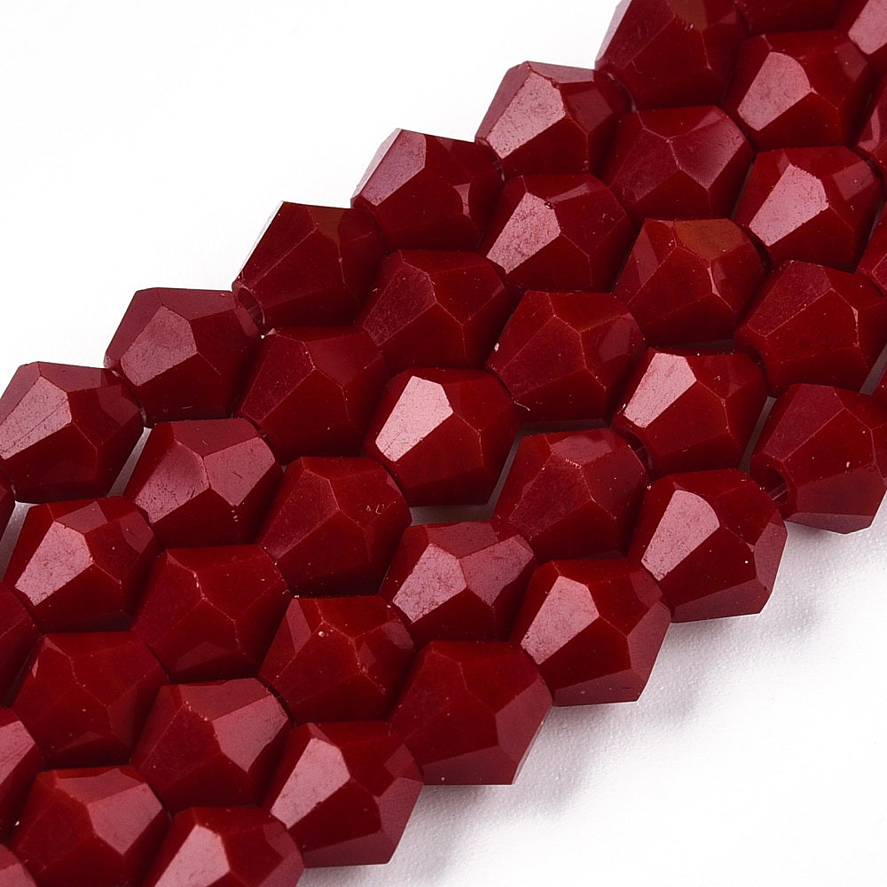 Glass Bicone 6mm Opaque Red approx 46 beads per 26cm strand