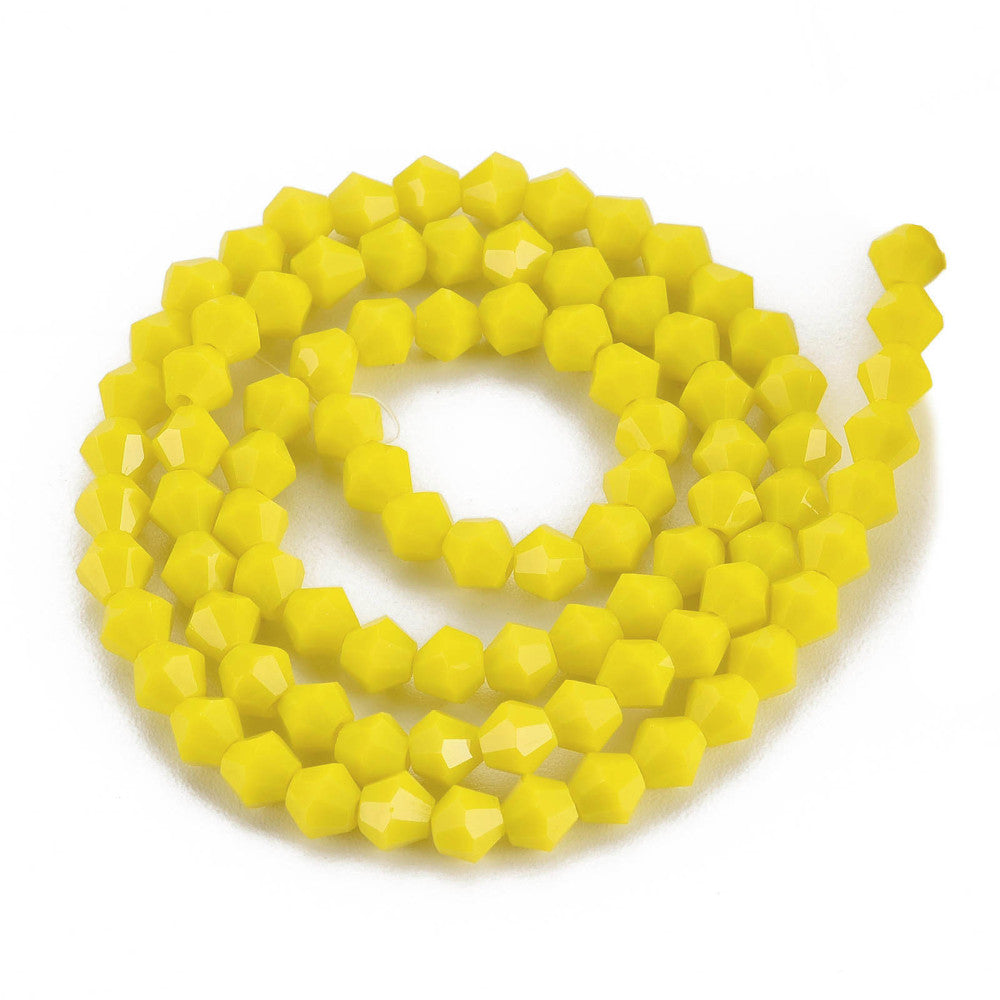 Glass Bicone 4mm Opaque Yellow approx 86 beads per 33cm strand